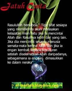 Tetapi jika tidak berhati-hati, cinta boleh membutakan mata hati kita. Seperti sabda Rasulullah SAW yang bermaksud: "Cintamu kepada sesuatu menjadikan kamu buta dan tuli." (Hadis riwayat Abu Daud dan Ahmad)